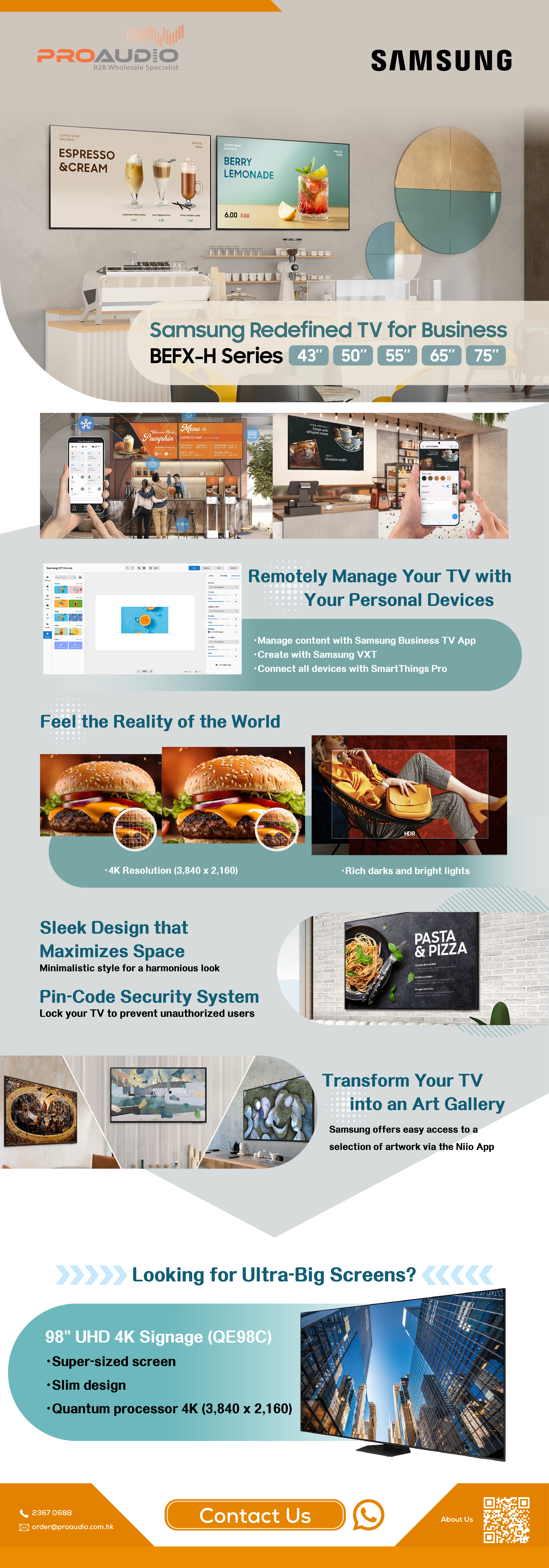 Samsung BEFX-H Series & The QE98C - Redefined TV for Business