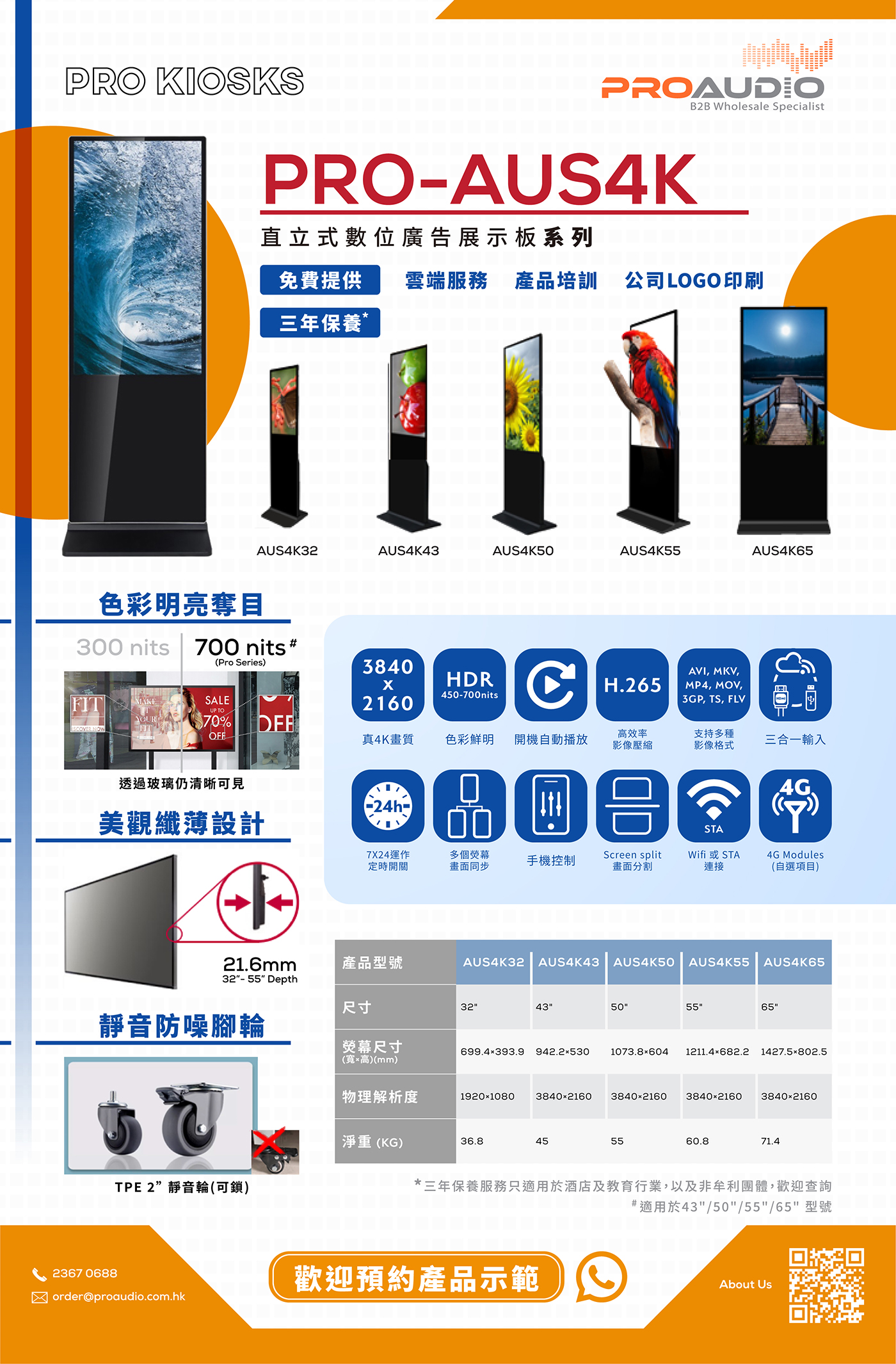 PROKIOSK AUS4K 32'' - 65''直立式數位廣告展示板系列